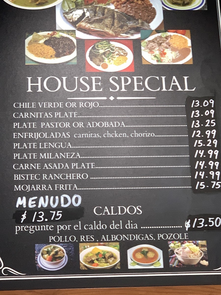 If you're a fan of soups, the Menudo ($8.95) and Caldo De Pollo ($7.50) offer comforting and traditional Mexican flavors. The Albondigas ($8.95) is also a hearty option for those seeking something different. For those looking for variety, the Combination Plates are perfect, with favorites like the Burrito Combo Plate ($8.95) and One Piece Of Chicken And Enchilada Plate ($9.50), offering a perfect mix of tastes.
