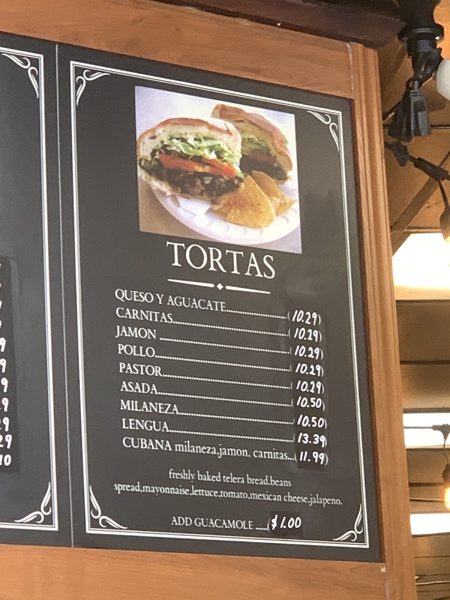 Beef tongue in a savory green sauce, refried bean spread, mayonnaise, fresh cheese, jalapeno, lettuce, tomato and guacamole.