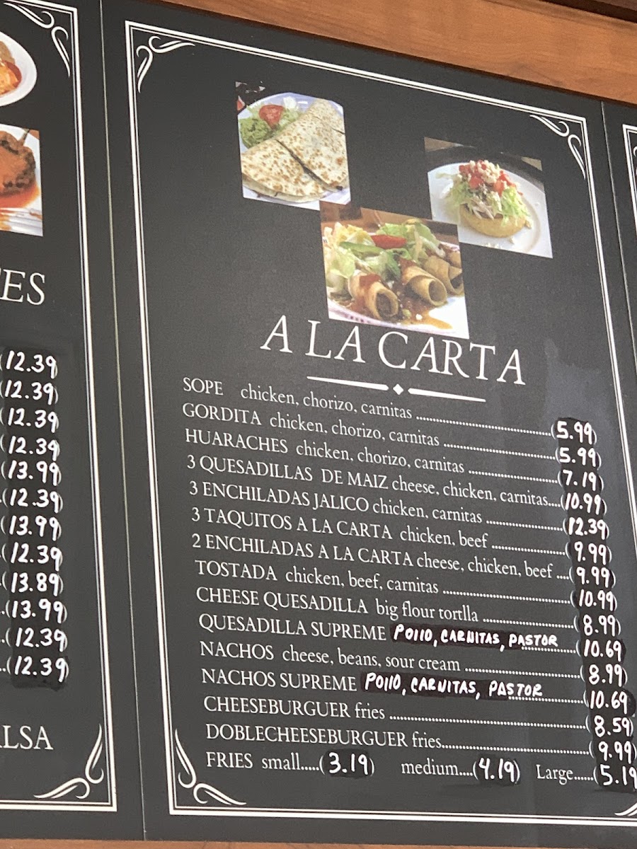 For those who prefer something a little more specialized, the Carnitas Plate ($9.50) and the Milanesa Plate ($9.95) are solid options, providing a comforting and authentic Mexican meal. If you're looking for a quick snack or side dish, try the Guacamole 8 Oz. ($3.95) or the Bag Of Chips (Medium Bag) ($2.50).